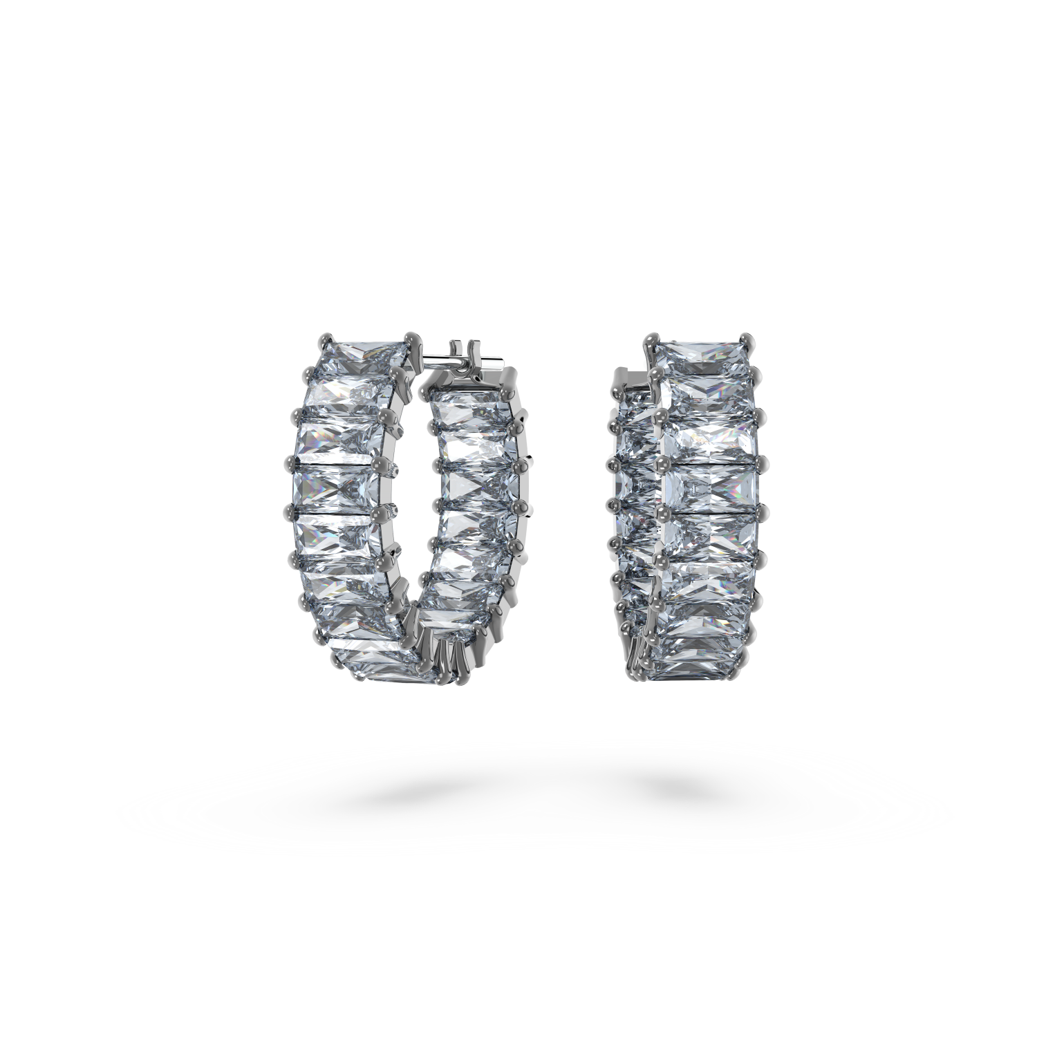 Swarovski - Orecchini a cerchio Matrix, Taglio baguette, Grigi, Placcato rutenio Ref. 5658650