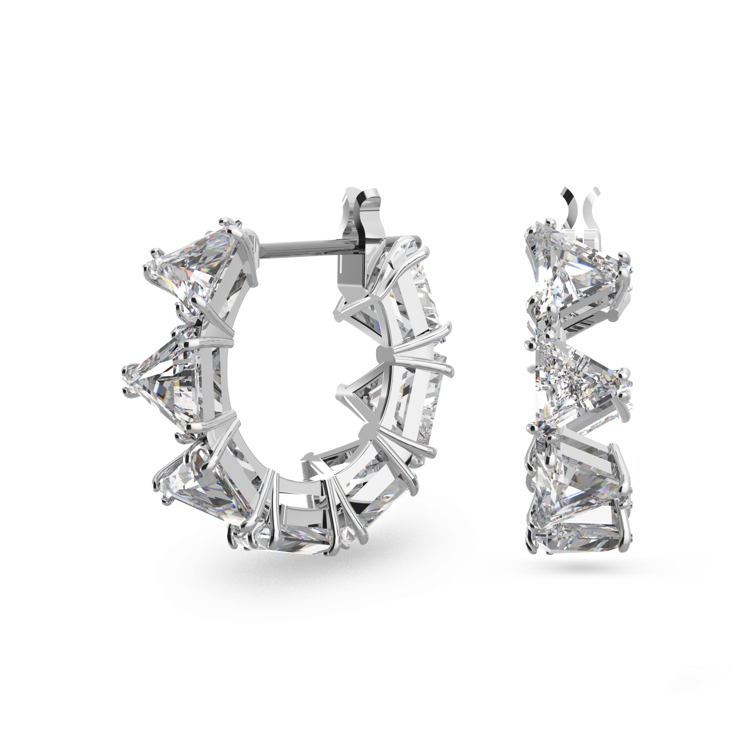 Swarovski - Orecchini a cerchio Ortyx, Taglio triangolo, Piccoli, Bianchi, Placcato rodio Ref. 5632467