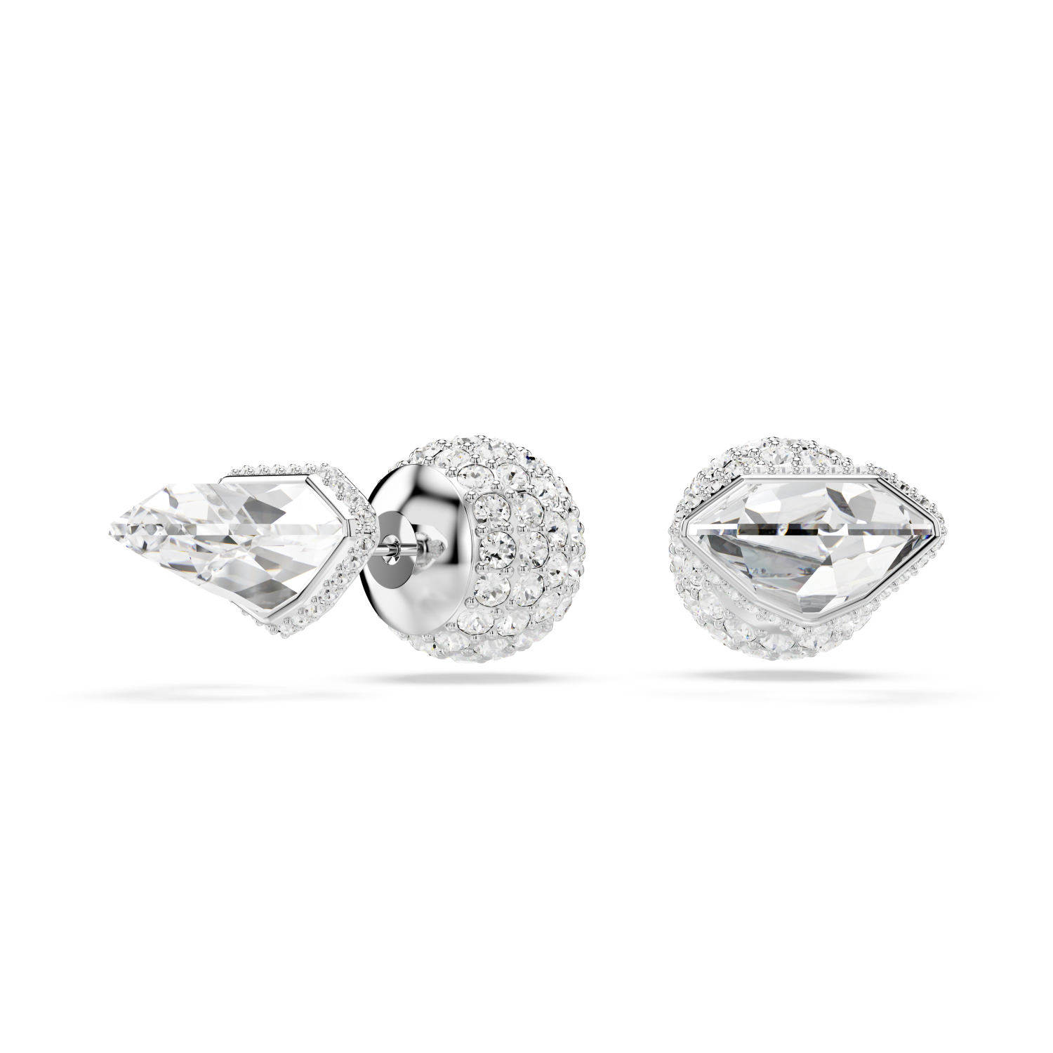 Questi versatili orecchini a lobo Lucent ti invitano a liberare tutta la tua creatività nello styling. Ciascuna creazione placcata rodio presenta un cristallo Cry sfaccettato sul davanti e due opzioni per il retro: una chiusura a sfera liscia in bianco, o una sfera impreziosita da un pavé di cristalli taglio Round. Una creazione unica che saprà ispirare la tua immaginazione. Dimensione: 1.4 x 2.6 cm