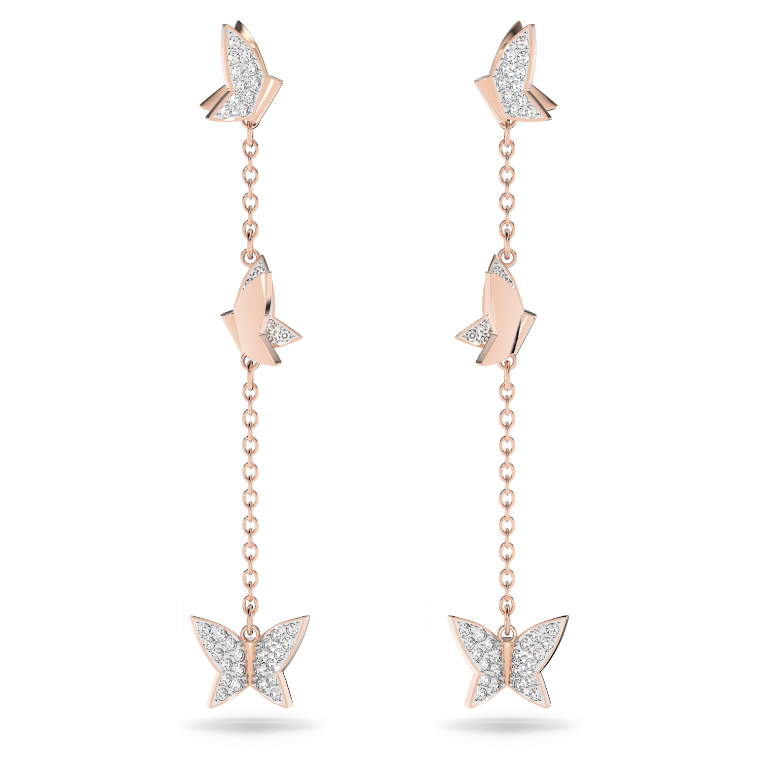 Swarovski - Orecchini pendenti Lilia, Farfalla, Lunghi, Bianchi, Placcato color oro rosa Ref. 5636426 - SWAROVSKI