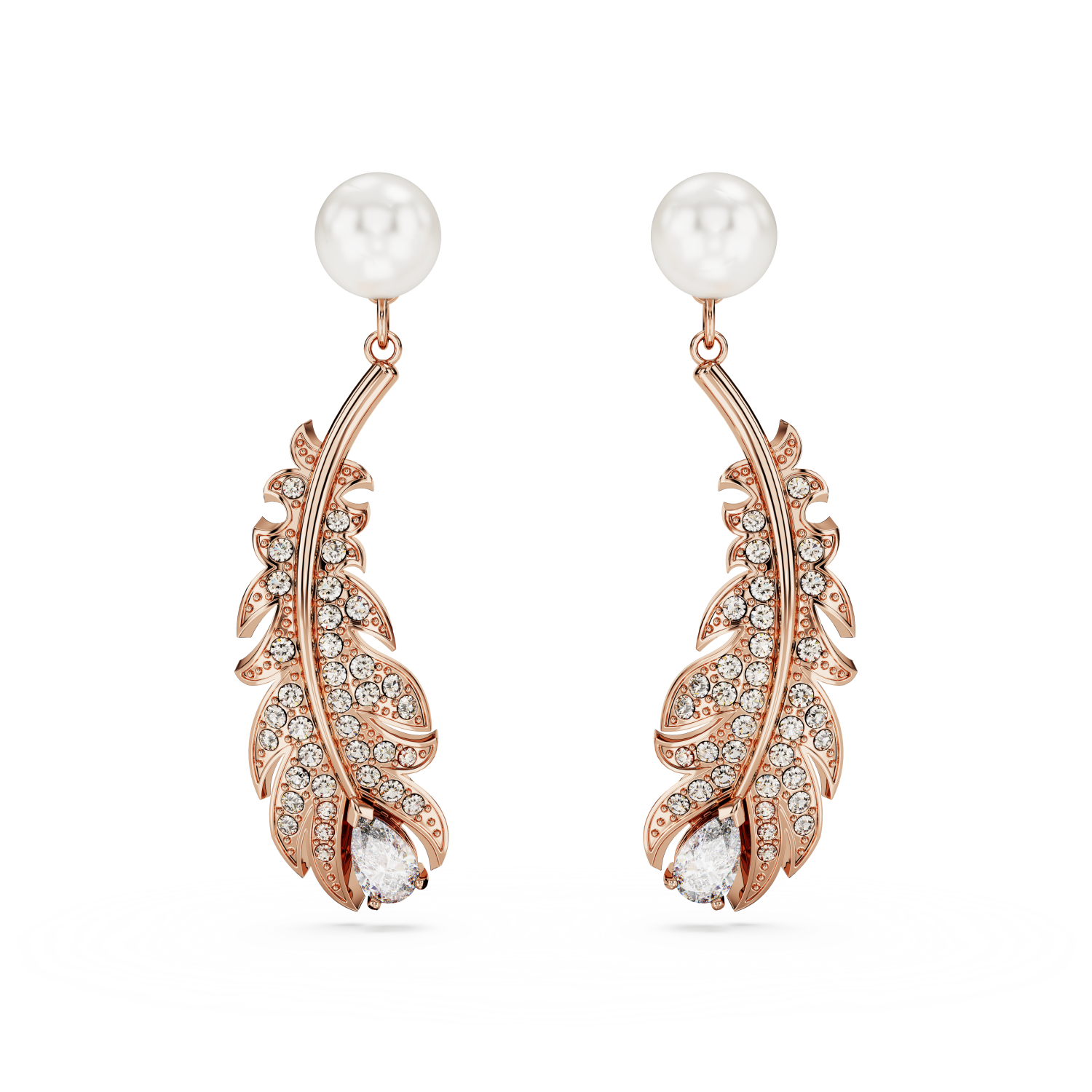Swarovski - Orecchini pendenti Nice, Taglio misto, Piuma, Bianchi, Placcato color oro rosa Ref. 5663487