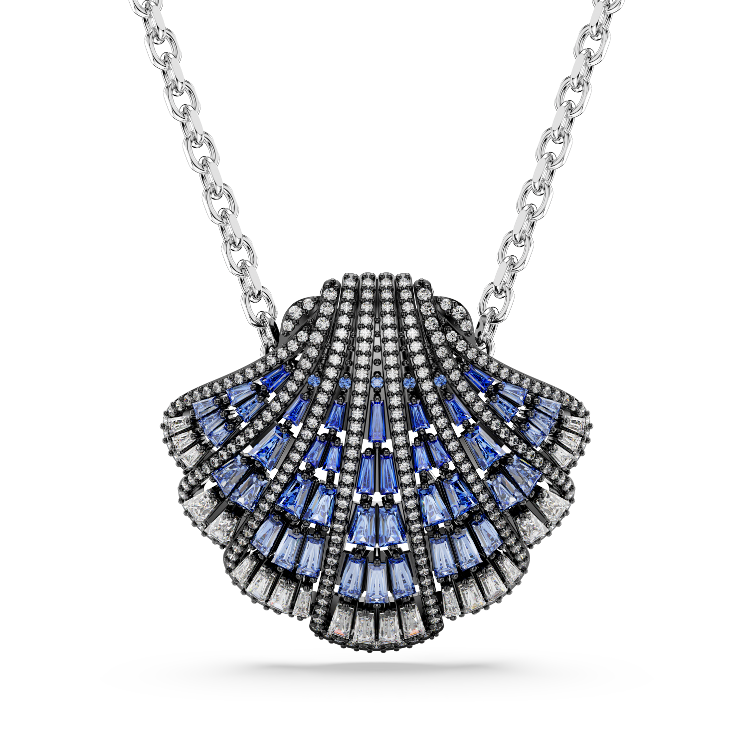 Questo gioiello della famiglia Idyllia ispirato all’oceano può essere indossato come pendente o come spilla. Il design a forma di conchiglia è placcato rutenio e impreziosito da una serie di cristalli Cry rotondi, e da accattivanti Swarovski Zirconia trasparenti e sfumati nei toni del blu. Indossalo come pendente su una catena rodiata, per un tocco di stile moderno su ogni outfit. Lunghezza (minima - massima): 60 - 67 cm - Dimensione decorazione: 3.4 x 3.8 cm