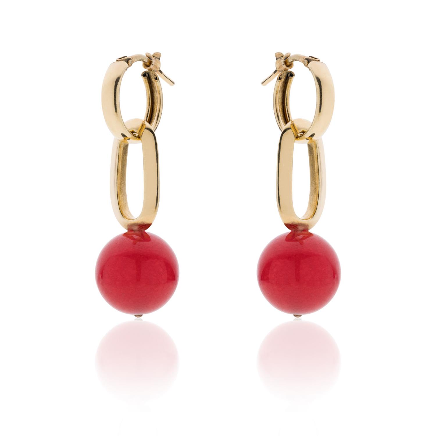 Attraverso gli accessori e i dettagli giusti possiamo raccontare qualcosa di noi. Con la delicata eleganza di questi orecchini con cerchietto dorato e maglia con perla rossa removibile, racconterai sicuramente una storia raffinata.